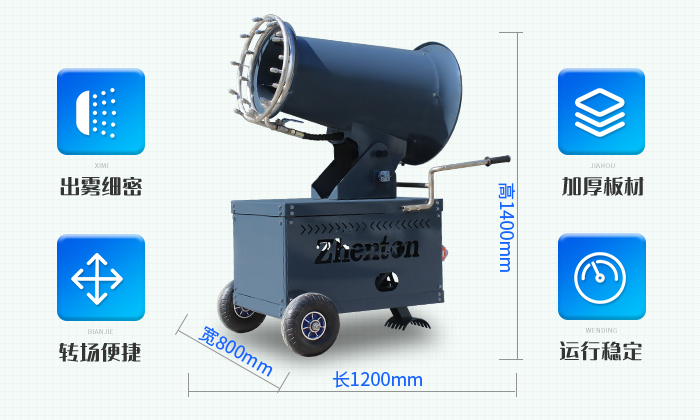 | 型號 | 靜風射程 (m) | 風機功率(Kw) | 水泵功率 (Kw) | 總功率(Kw) | 俯仰角度 (常規(guī)) | 旋轉角度 | 噴頭數量 | 20米處噪音 (dB) | 箱體重量 (kg) | ||