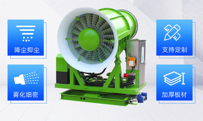 鄭州鄭通風(fēng)機(jī)制造有限公司是一家集研發(fā)、制造、銷售為一體的風(fēng)機(jī)專業(yè)制造企業(yè)。霧炮機(jī)噴出的水霧是微米級(jí)水霧,它是由水和氣經(jīng)過(guò)在不同壓力、流量控制下,經(jīng)過(guò)特殊的微米級(jí)噴霧單元產(chǎn)生的,霧炮使得微米級(jí)噴霧的霧粒相互排斥且獨(dú)立,提高了與粉塵的結(jié)合。