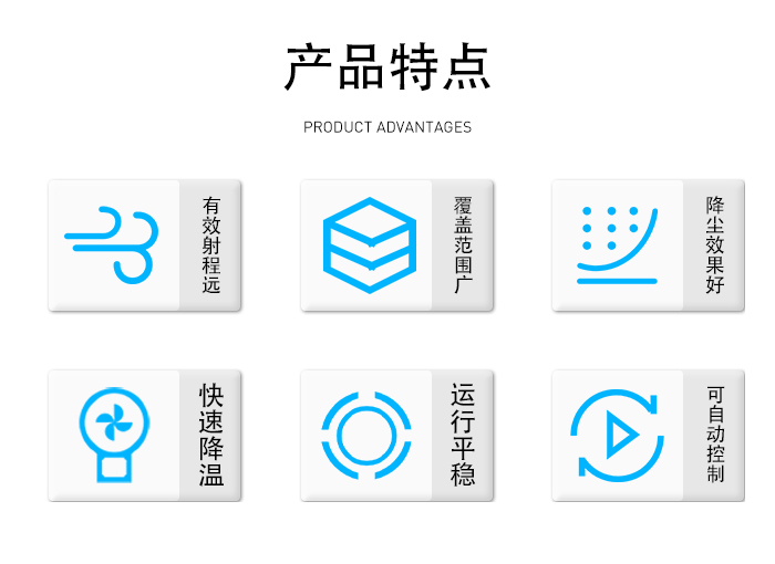 2.噴出的霧粒細小,與粉塵接觸時,形成一種潮濕霧狀體,能快速將粉塵抑制;