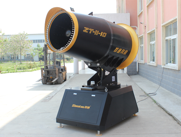 鄭州鄭通風(fēng)機(jī)制造有限公司是一家集研發(fā)、制造、銷售為一體的風(fēng)機(jī)專業(yè)制造企業(yè)。霧炮機(jī)噴出的水霧是微米級(jí)水霧,它是由水和氣經(jīng)過(guò)在不同壓力、流量控制下,經(jīng)過(guò)特殊的微米級(jí)噴霧單元產(chǎn)生的,霧炮使得微米級(jí)噴霧的霧粒相互排斥且獨(dú)立,提高了與粉塵的結(jié)合。