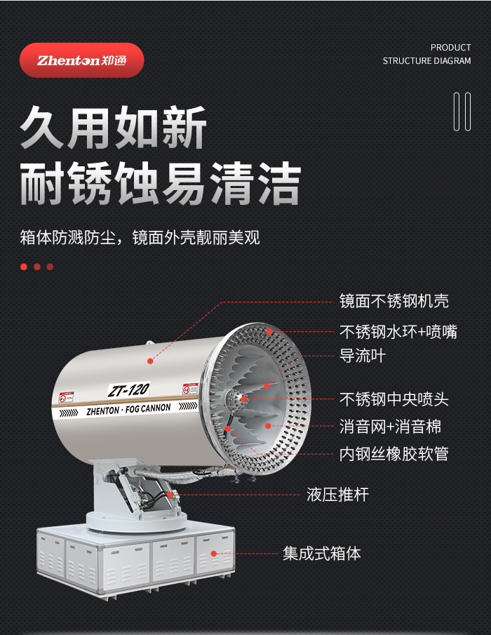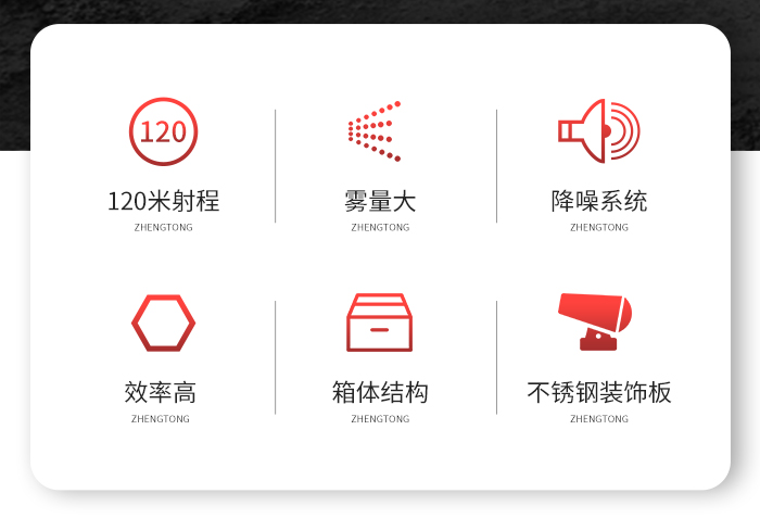 | 型號(hào) | 靜風(fēng)射程 (m) | 風(fēng)機(jī)功率(Kw) | 水泵功率 (Kw) | 總功率(Kw) | 俯仰角度 (常規(guī)) | 旋轉(zhuǎn)角度 | 噴頭數(shù)量 | 20米處噪音 (dB) | 箱體重量 (kg) | ||